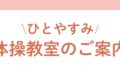 今月の体操教室は9月12日がお休みとなっていますので、よろしくお願いいたします。